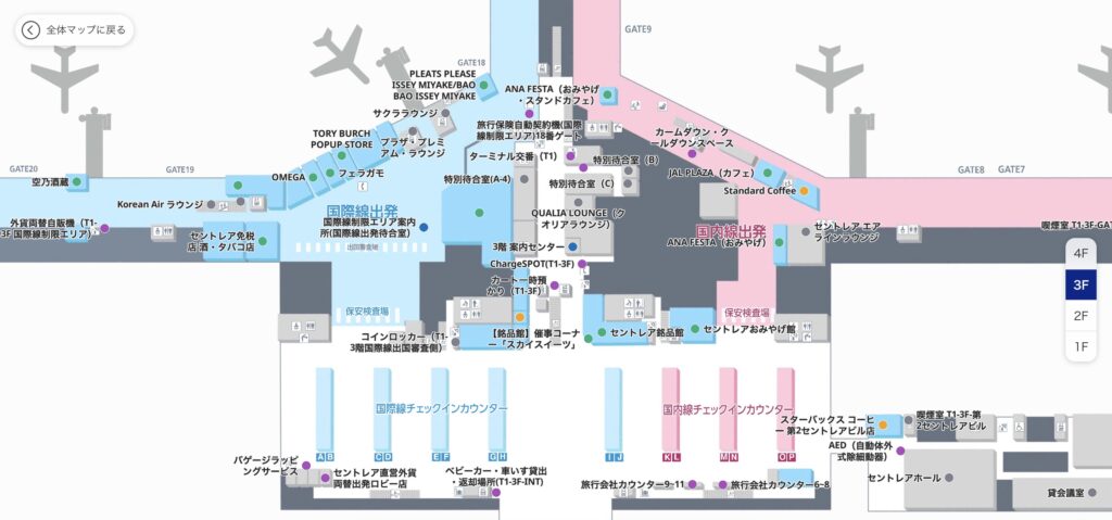 それでは、ターミナルごと・エリアごとに各施設を詳しく見ていきましょう。