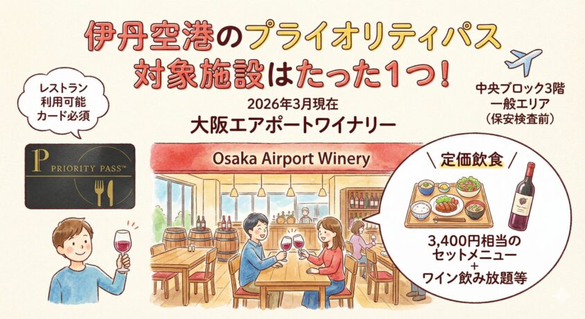 大阪エアポートワイナリーは伊丹空港における唯一のプライオリティパス対象施設です。