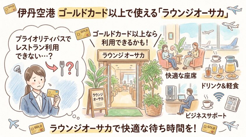 結論から言うと、伊丹空港にはプライオリティパスが使える施設は1つだけです。
