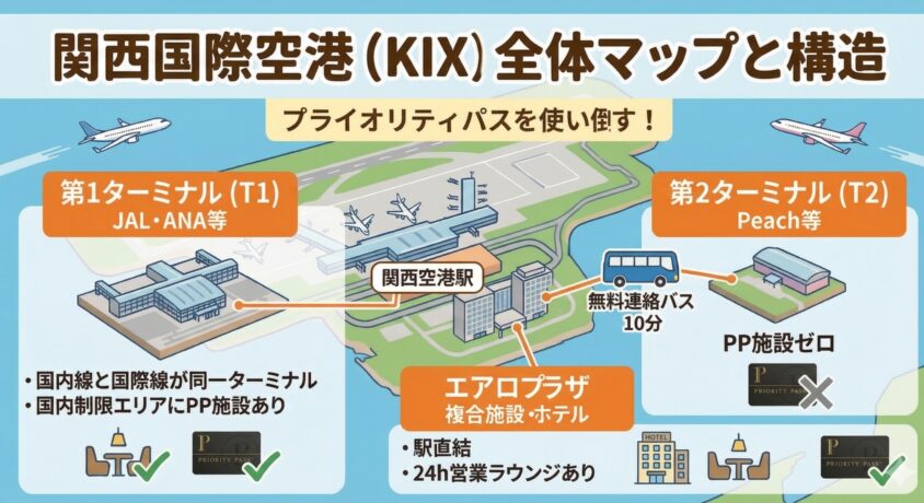 まずは、プライオリティパスを使い倒すための前提知識として、関西空港のターミナル構造を体系的に理解しましょう。