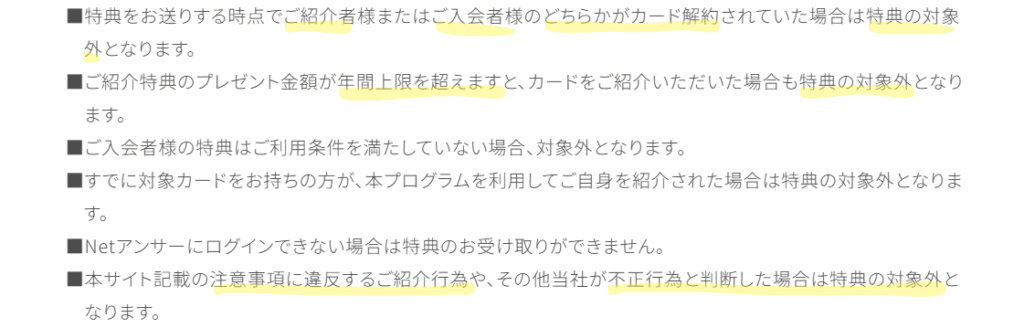 - 紹介制度は規約違反で特典取消リスクが高い