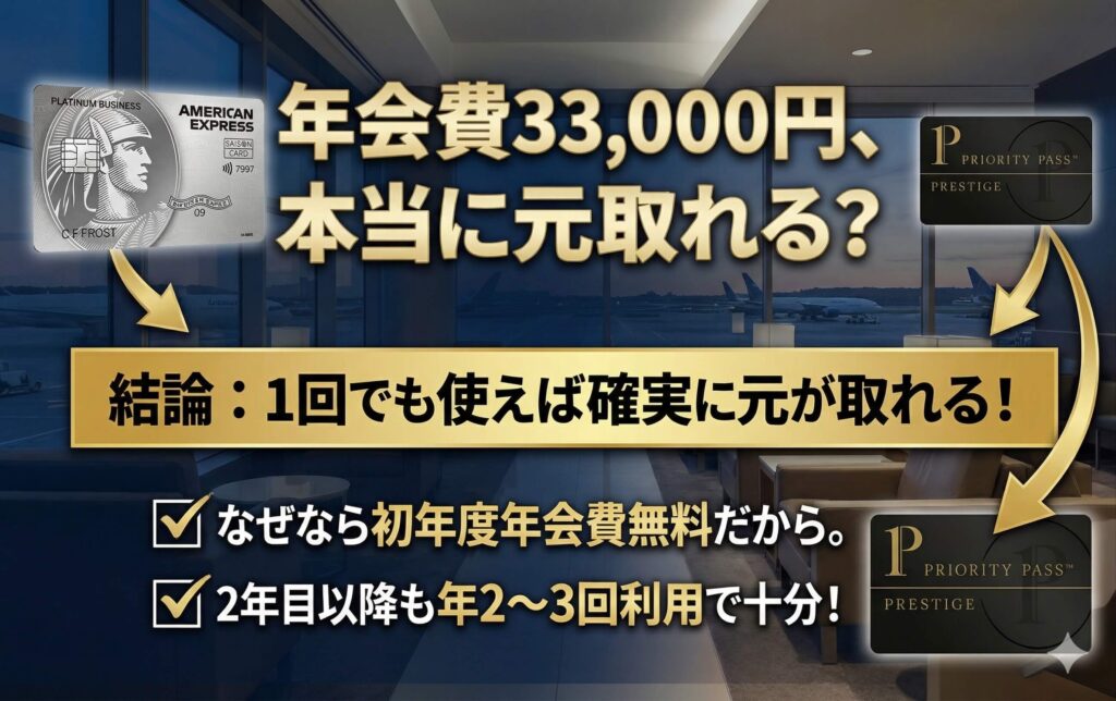 「プライオリティパスが付帯するのは嬉しいけど、年会費33,000円って本当に元取れるの?」って思いますよね。
